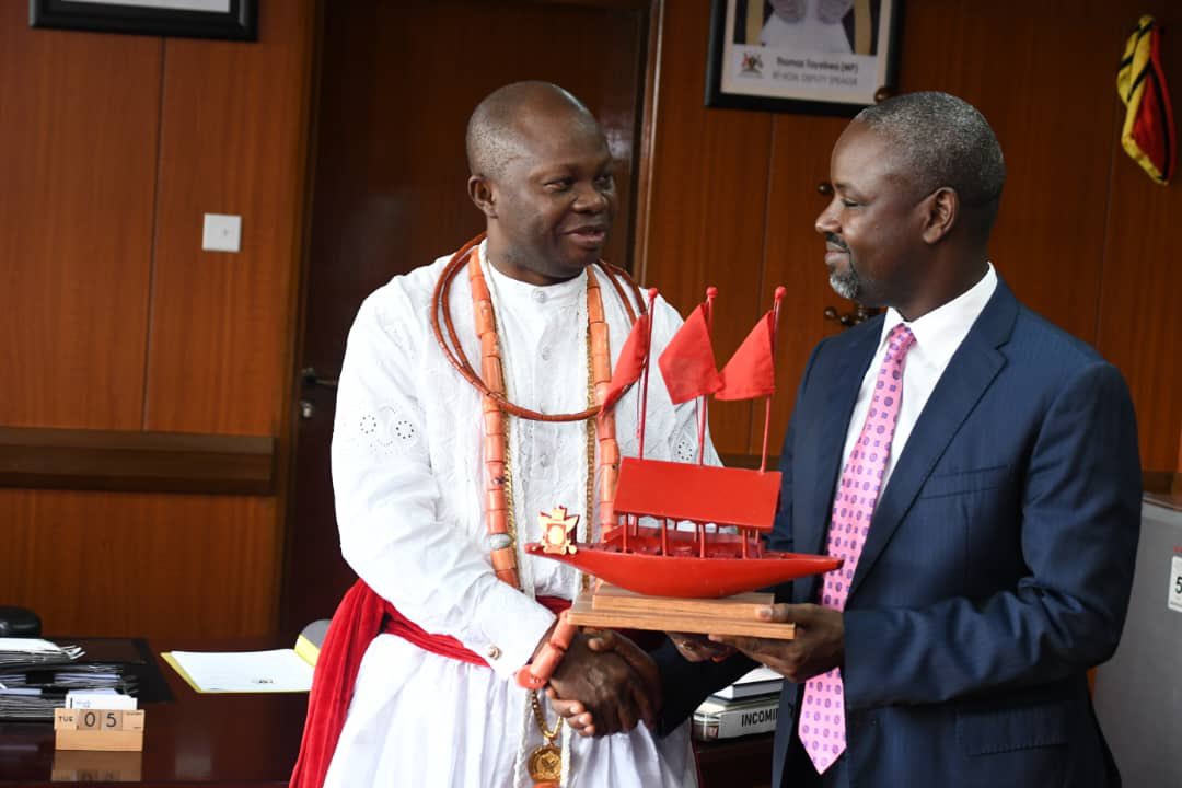 The Deputy Speaker of Parliament Rt Hon Thomas Tayebwa has hosted a delegation from the Nigerian Kingdom of Warri in the Delta State at his office at Parliament.