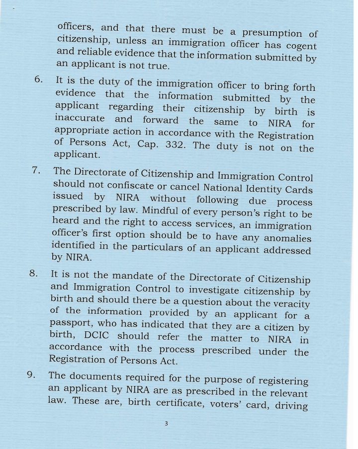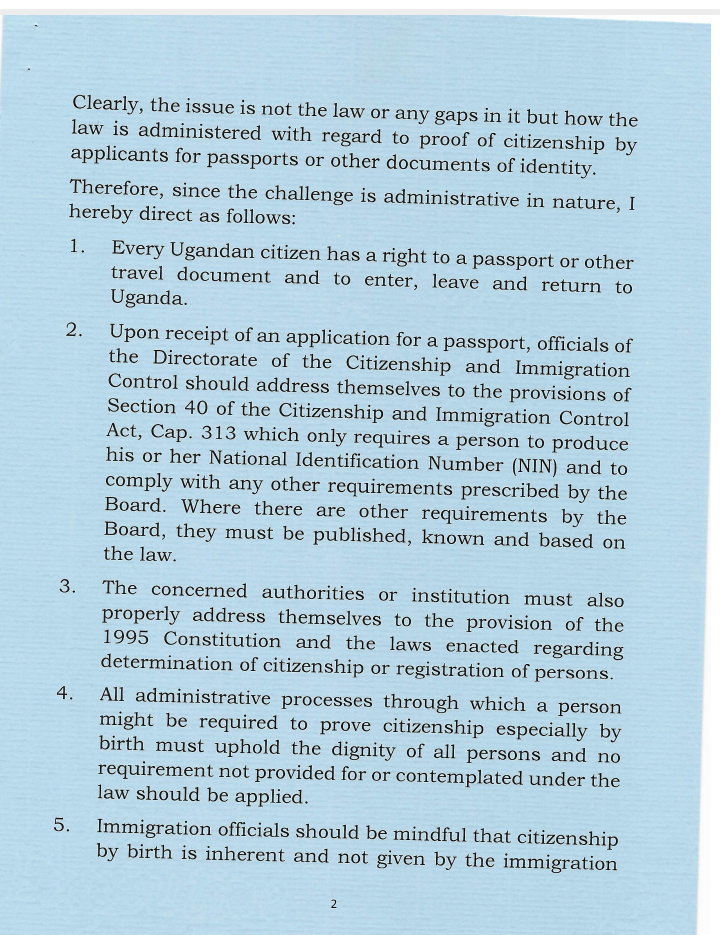 President Museveni emphasized that citizenship by birth is a constitutional right and cannot be arbitrarily determined by immigration officials. He ordered that immigration officers cannot reject applications for identity documents without providing concrete evidence that an applicant is not Ugandan. Additionally, he underscored that the burden of proof lies with immigration officials, not the citizen.