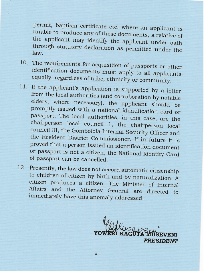 President Yoweri Kaguta Museveni has signed a long-awaited Executive Order aimed at ending years of discrimination and harassment faced by Uganda’s indigenous Banyarwanda at the hands of Immigration Officers and officials of the National Identification Registration Authority (NIRA).