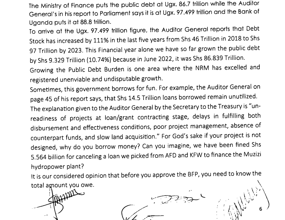 The Opposition expressed their concerns in their minority report to the 2024/25 budget framework paper.