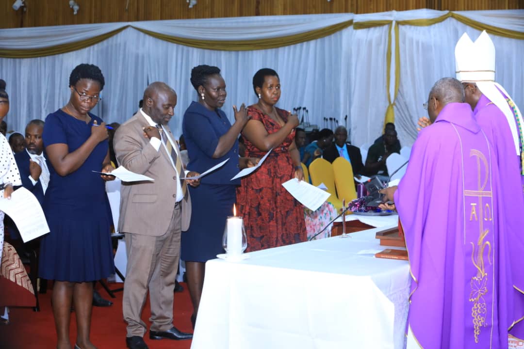 The leadership of the Parliamentary Catholic Chaplain led by their leader Hon Lucy Akello, the Amuru District Woman MP has taken oath at the Parliamentary building. The function was presided over by the Kasana – Luwero dioecece Bishop the Rt Rev Mukasa Lawrence yesterday at the Parliament main conference hall. Bishop Lawrence Mukasa was the main celebrant at the Pontifical mass for Parliament’s annual Lighting of the Christmas tree which was attended by the Deputy Speaker of Parliament the Rt Hon Thomas Tayebwa, several legislators and Parliamentary staff.
