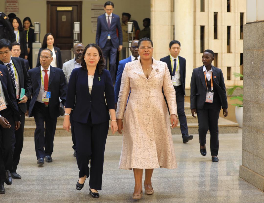 The Speaker of Parliament Rt Hon Anitah Among has held bilateral talks with H.E. Vo Thi Anx Xuan, the Vice President of the Socialist Republic of Vietnam where they agreed to foster collaborations in agriculture, technology & investment. The meeting took place at Parliament of Uganda, on the sidelines of NAM Summit that is taking place in Kampala.